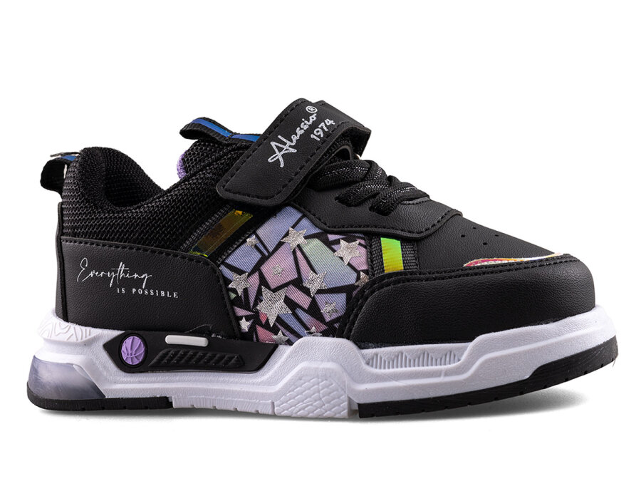 Alessio 039 Patik Cilt Işıklı - Siyah/Lila/Beyaz/Siyah T