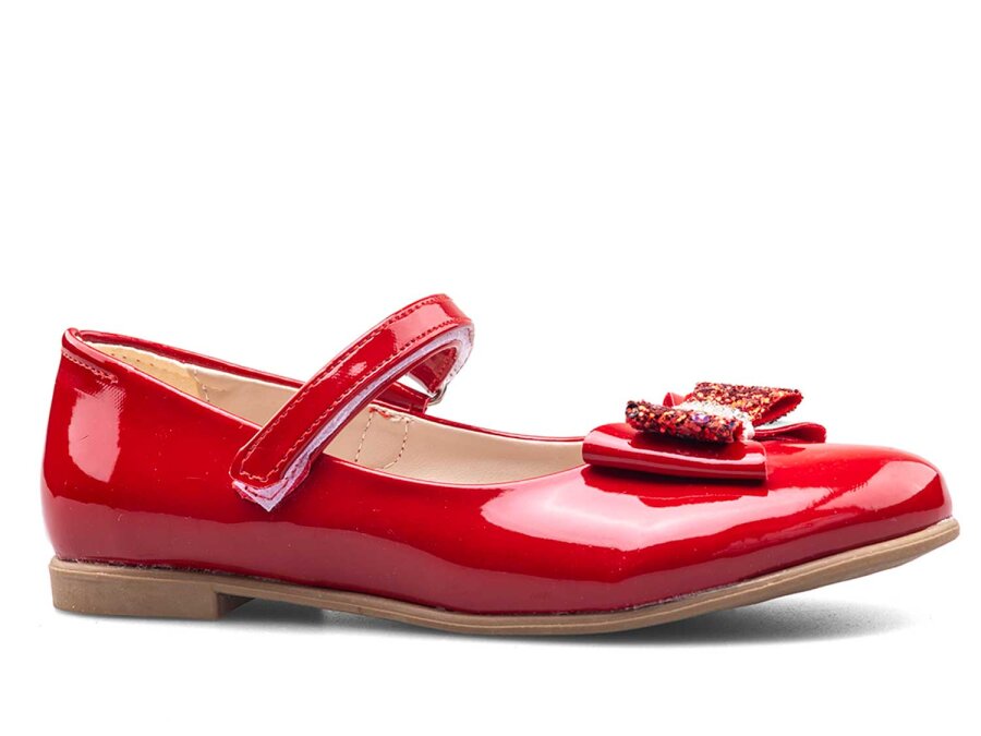 Anıl 023 Taşlı Patik Babet Cilt - Parlak/Kırmızı