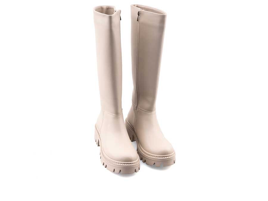 Polact 24071 Zenne Cilt Fermuarlı Bot - Bej