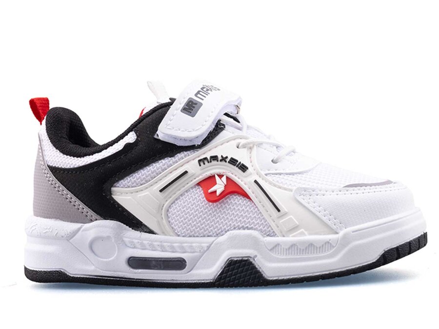 Maxsis 514 Patik Anrk Işıklı - Beyaz/Siyah/Kırmızı